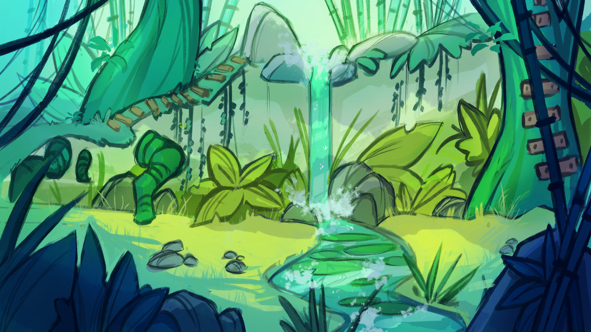 Full body render + complex background