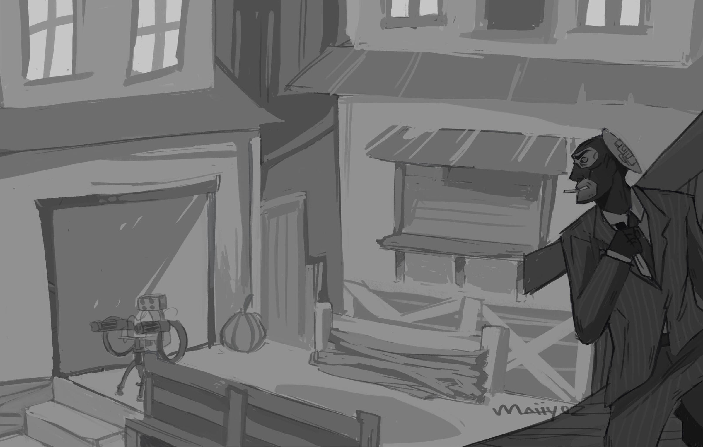 If at any point the client has failed to respond to sketches or status updates provided for a period of longer than one month the commission will be considered abandoned and further work will require renegotiation.